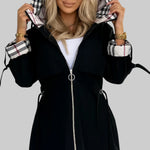 OLGA ELEGANTNÝ A MODERNÝ TRENČKOT s kapucňou a štýlovými károvanými detailmi, ktoré podčiarkujú jeho sofistikovaný vzhľad. Ľahká a ochranná tkanina ho robí ideálnym na prechodné obdobie – spája eleganciu s praktickosťou. Pás s opaskom krásne zvýrazní siluetu, zatiaľ čo zips a hlboké vrecká dodávajú modelu funkčný a zároveň chic charakter.