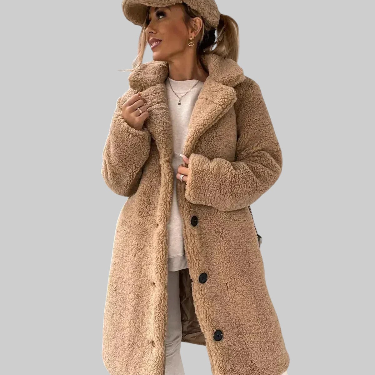 KALINA | ELEGANTNÝ DÁMSKY DLOHÝ KABÁT SO ZAPÍNANÍM NA GOMBÍKY