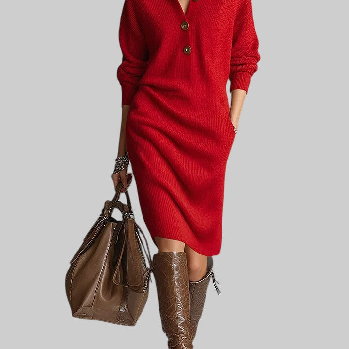 ANDREA | POLYESTEROVÉ ŠATY S DLHÝM RUKÁVOM A VRECKAMI