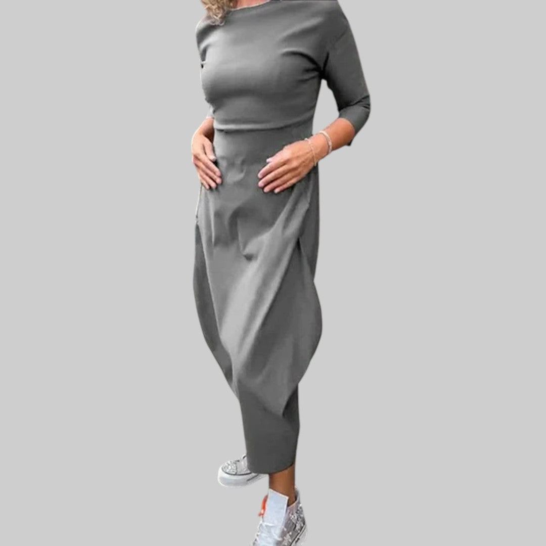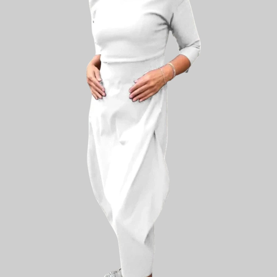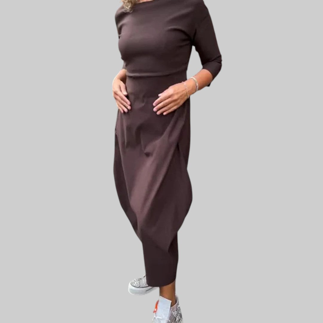Moderná minimalistická silueta – čistý a štruktúrovaný vzhľad vhodný do rôznych situácií. Či už strávite popoludnie pohodlne doma alebo idete na večerný výlet, šaty pôsobia elegantne a nadčasovo. Kúsok, ktorý nikdy nevyjde z módy.